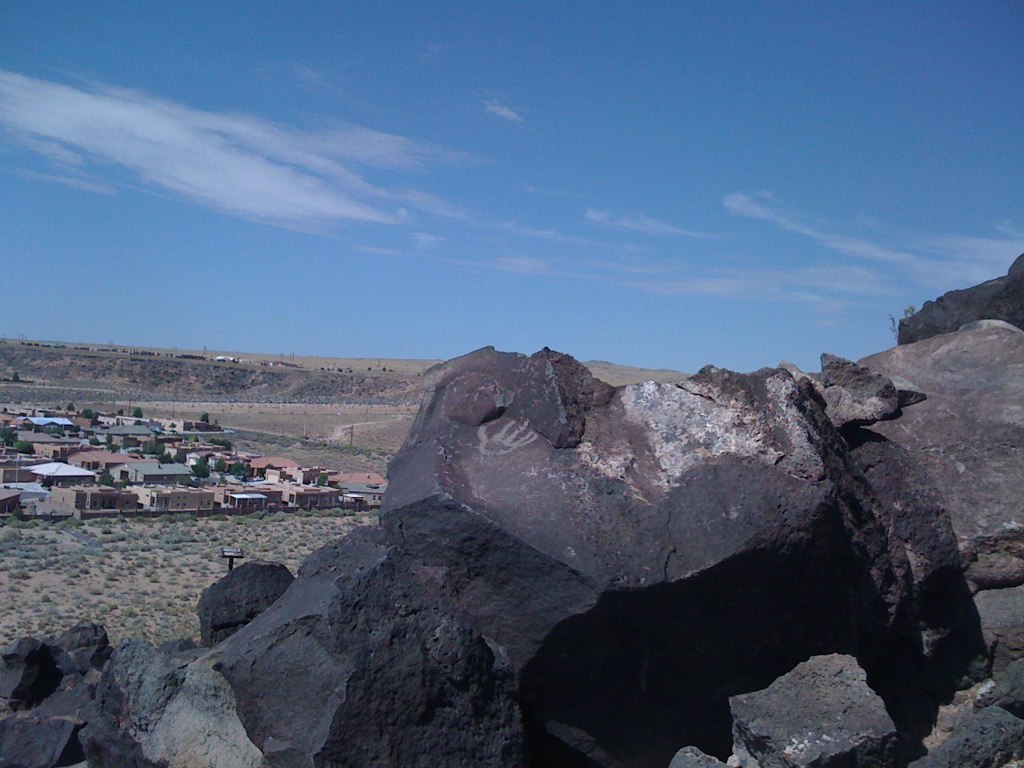 After a couple of days nursing bitter colds, we went to the Petroglyph National Monument. There the U.S. Park Service cares for ancient carvings on volcanic rock in three different canyons. We went to Beta Negra Canyon and hiked the trails, taking snaps of the gyphs in the morning sun. Despite other people hiking the trails – some louder than others – and despite my continued drippy nose and bronchial cough, I was surprised by what I encountered on those rocks. The Holy.
