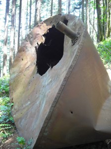 As a hiked along a steep, nearly deserted trail I came across a curious thing. The ten, maybe twelve foot diameter tank rusts in the middle of a wooded area far from any roads. The ugly object captured my attention because it was so out-of-place.
